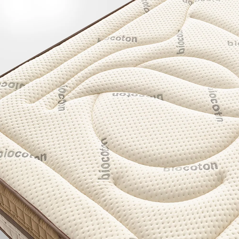 Este colchón tiene una altura de 31 cm +/- 1 con una firmeza 7 de 10. Este es un colchón de DOBLE CARA, con lo que puede usarse por ambos lados solo con darle la vuelta. Está compuesto por una capa de tejido Strech de 650g muy suave y agradable al tacto, tejido de microfibra transpirable que sirve para la anticondensación, una capa de nuestra espumación natural de Greenfoam 30mm hecha de aceite de soja seguido de nuestro sistema SABISAC que serían los muelles encapsulados de 17cm que aportan la firmeza y la independencia de presiones.